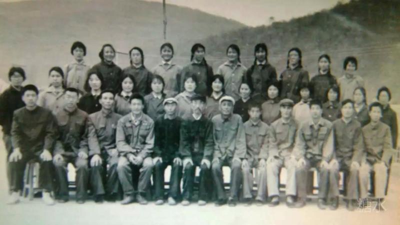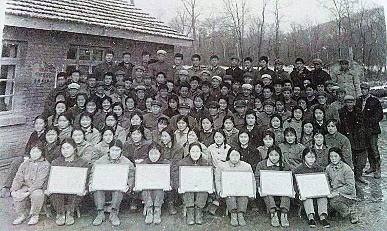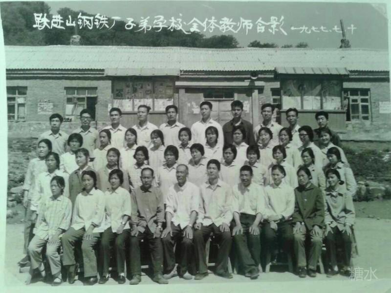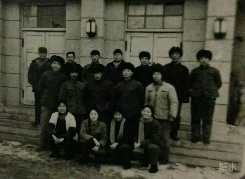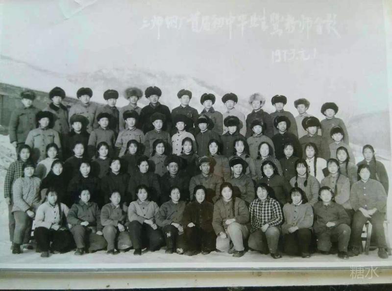 前排左起,刘仕江,于启权,黄为健(女),李占英(北京知青),刘静波(校长),姜师傅(工宣队),孟?。中排,右郑秋萍(女,上海知青),丁桂茹(女,北京知青),贾玉川(北京知青),李长平,?,?(女)。其他是学生。