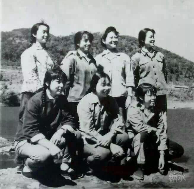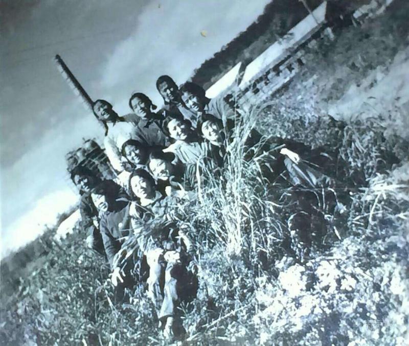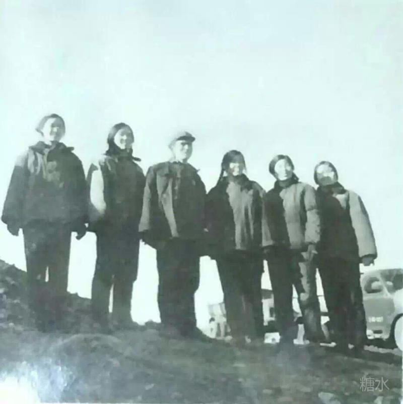 前排左起:王瑞琴(双鸭山知青打字员),李素珍(天津知青广播员),张祖芳(上海知青劳资科) 后排左起:黎丽(北京知青),张守清(18团,北京国家统计局司级干部),金亚萍(上海知青政治部),任玉珍(打字员哈知青) 拍摄地点:钢厂水库大坝