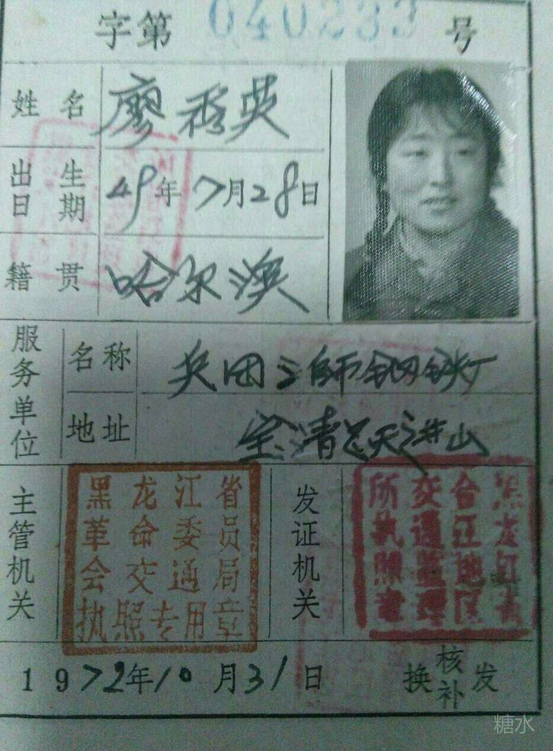 发两张个人保存的在钢厂的老照片。那是7?年记不住了,钢厂先进工作者,摆在厂部的橱窗上。另一张是开车照。(廖秀英注)