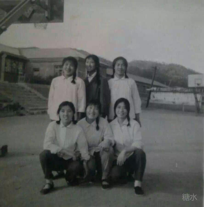 钢厂学校学生与老师合影 后排左起:刘桂芝(刘仁江女儿),杜林忆(工程连,后转农副连任老师,先在哈尔滨定居),刘桂兰(刘仁江大女儿,刘桂芝的姐姐,和陈海军结为夫妇) 前排左起:钱万棣老师(北京知青,与北京知青刘宗祥结为夫妇,调商店任文书)。 严老师,封老师。