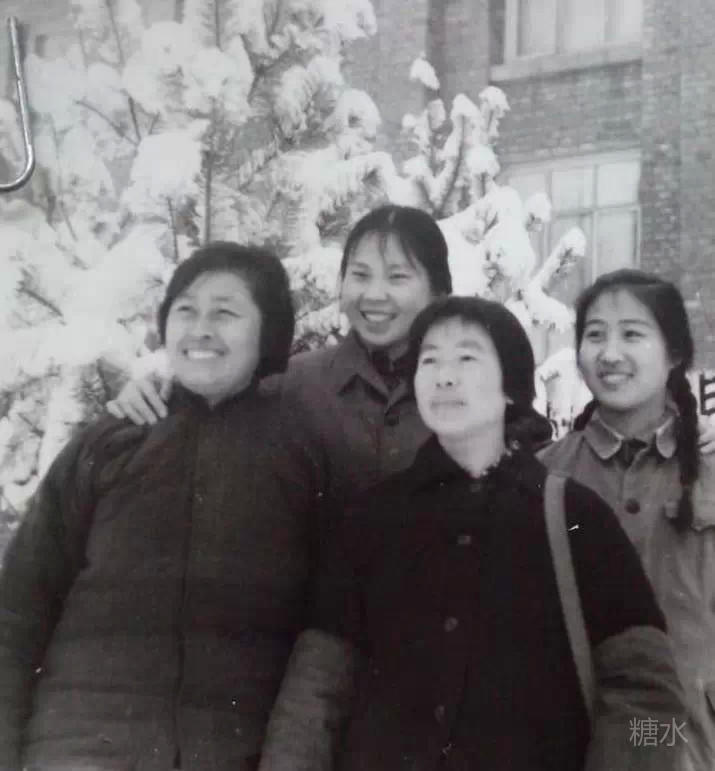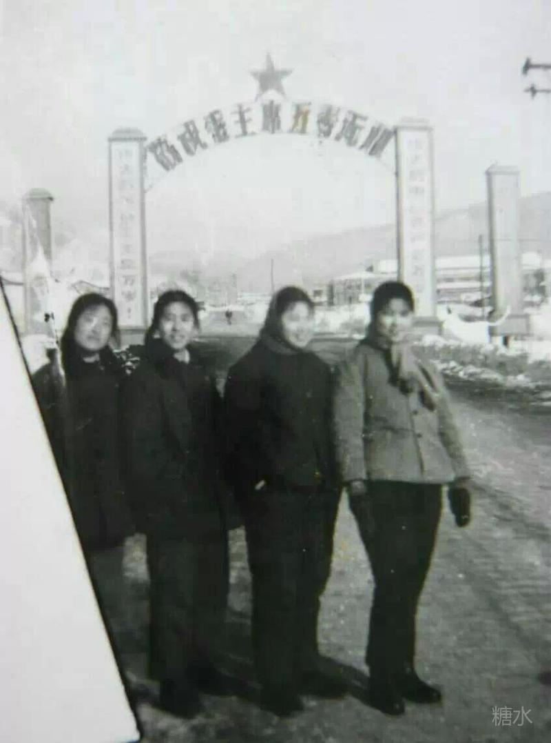 左起:李桂琴(冶炼科副科长,学校副指导员),李素琴(广播员),张尔英(炼铁连会计北京知青),高女士?(冶炼科仓库保管员,是本地青年)