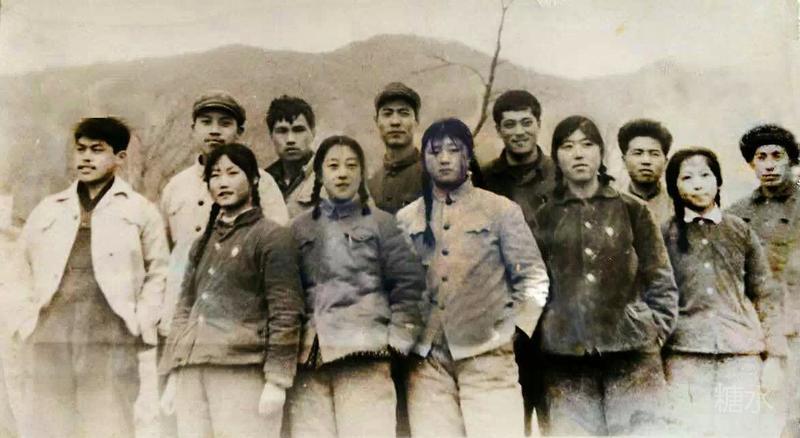 左起:?,?,?,?,李素珍(广播员),?,骆松声(勘探连连长,上海知青)