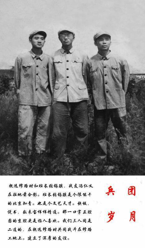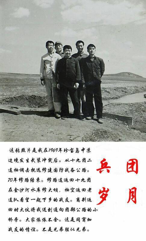 后排:张维安,架子工,在工程连工作。 前排:左一,王斌,左二许岷,哈市青年,