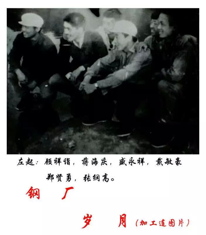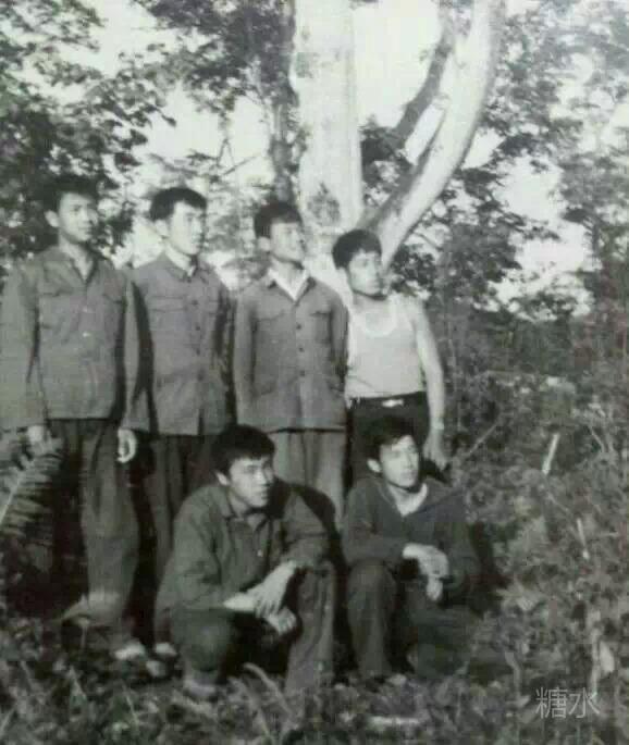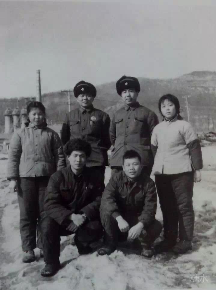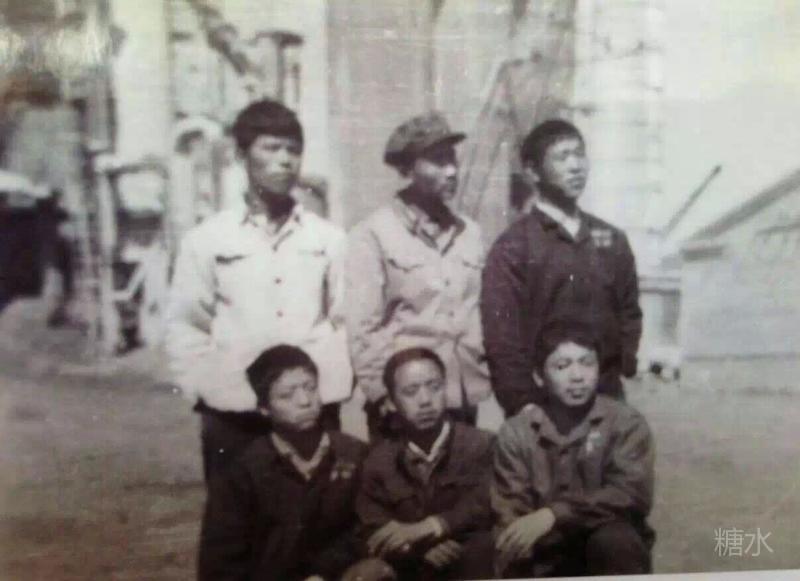 后排左起:张家善,老苏,秘瑞全,姜恩鸿, 前排左起:张家祥(北京知青),蔡徳宝(北京知青) 这是钢厂苐一个凿岩班(采矿一连)全体人员合影,很珍贵!