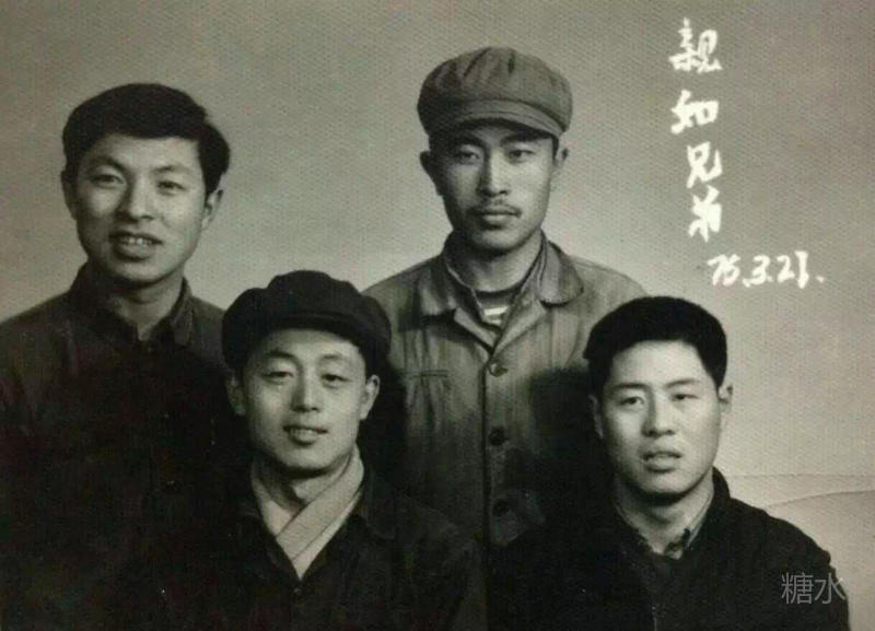 一杨志学北京知青后边是杨学升机修厂电焊工,左边是张友财水暖工左边是我再右边是吴云龙北京知青。(杨传信注)