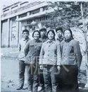 前排(左起):章爱华、史永玲(北京知青,政治部贺国民夫人)、程东(北京知青,政治部), 后排(左起):冯诚忠(厂团委青年干事)、贺国明、蒋霞君(上海知青)、张宝清(广播员,北京知青)