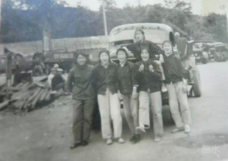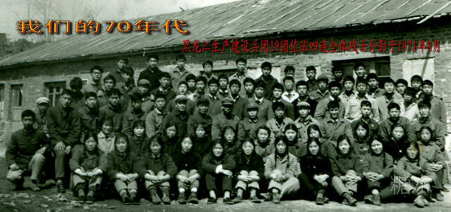 后排左起:肖晶(哈知青),李素珍(天津知青,广播员) 前排左起:廖秀英(汽车连女司机,丁建春爱人,哈知青),黃俊雅(哈尔滨知青,汽车连女司机)
