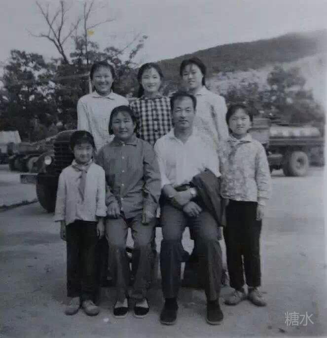 汽车连于金林(驾驶排排长)家的全家照,照片五个女儿,五朵金花 前排左起:老五于宝华,老于的媳妇张秀英,于金林,老四于桂琴 后排左起:老二于桂华,老三于涛,老大于桂珍(小于孩,劳资科) 于家大女儿小于孩告诉我们照片背后的故事:她母亲张秀英也是车队职工,在75年1月份在修路放炮时被炸伤了,颅骨粉碎性骨折,作为工伤在家长期养伤,照片是那年夏天车队同事为他们家大难恢复后拍的纪念照片,当时张秀英还数不了十个数,之后张秀英慢慢恢复,但总是感到头痛,86年他们老两口回山东和小于孩住在一起,2012年她父母都走了!我们为于家曾经的遭遇表示深深的同情和敬意。 王开冗注:那时我们都称他为“老于头儿”,他磊落耿直,主持正义,敢于发表不同的意见,一直是汽车连非常有影响的干部,和我们知青中的老大申隽生非常要好。可惜现在他们都不在了…