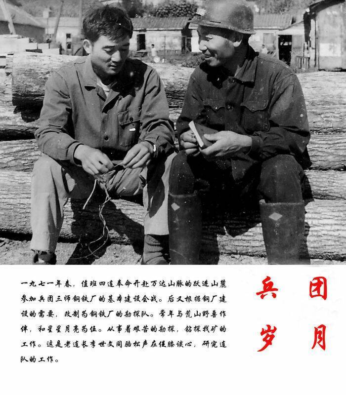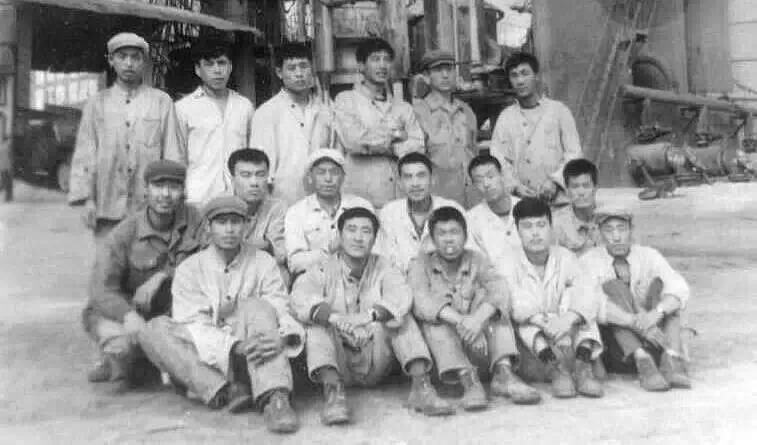 钢铁厂勘探队(参加钢铁厂组建大会战时,是十九团值班四连——“兵团红四连”,后整建制留在了钢铁厂。)一九七一年在钢铁厂自己建造的营房前合影。