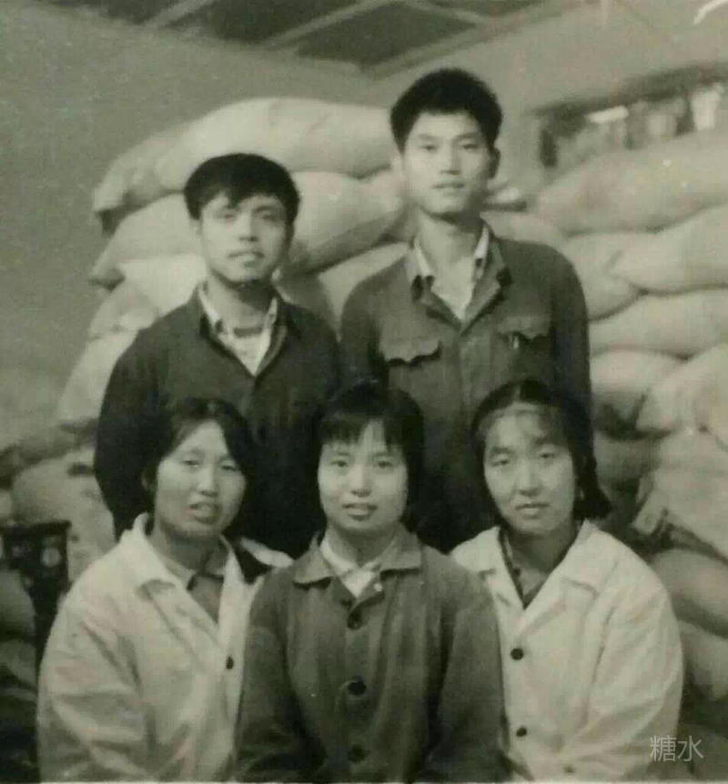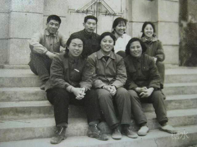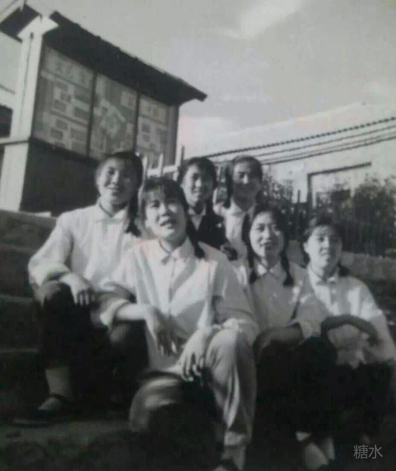 欢送劳资科乐秀君赴上海读大学。 前左起:财务科侯科长女儿,徐?(上海知青,基建科描图员),乐秀君(上海知青,劳资科科员,赴上海华东理工大学就读) 后左起:赵兰蘋,徐干事,李燕云(上海知青,办公室)
