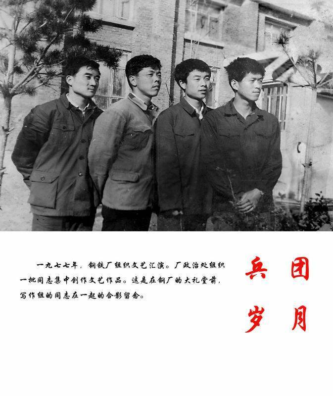 这是钢厂宣传队的全体人员是的,77年钢厂到哈平房区慰问时照的,是陈秉志代表钢厂,张福先带队,李开锋是宣传队长,张汝泰是编导。我记得有个钢厂领导的。缺一个人是周勤。(李开锋注)