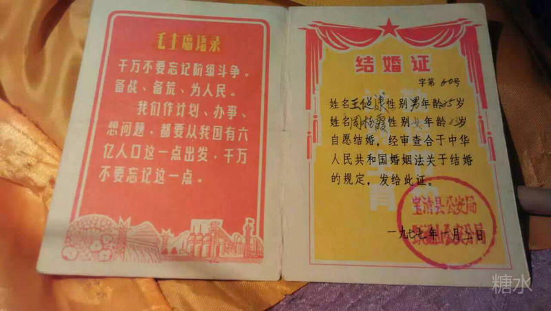 这是我们在钢厂的结婚证,连名字都写错了。 (郝景民注) 属于错版,有收藏价值了。 (赵兰萍补注) 真的郝井民来了,郝景民怎么办? (颜裕真补注)