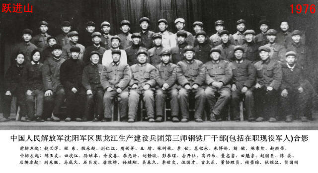 第一排:赵殿荣(采矿连连长),纪敏(采矿一连副指导员,学校校长),林凡(上海知青,采矿一连连长),张广? 第二排:焦相平(天津知青,采矿连副连长),宋佳鹏(天津知青),张明远,臧万广(哈尔滨知青,采矿连,财务科),丁树生,?,?, 第三排:周国良(宁波知青),?,?,?