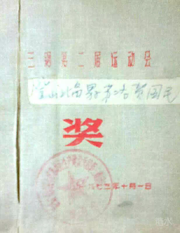 三钢第二届运动会,登山比赛男子第二名贺国民,奖,一九七三年十月一日,中国人民解放军沈阳军区黑龙江生产建设兵团第三师钢铁厂(印章)