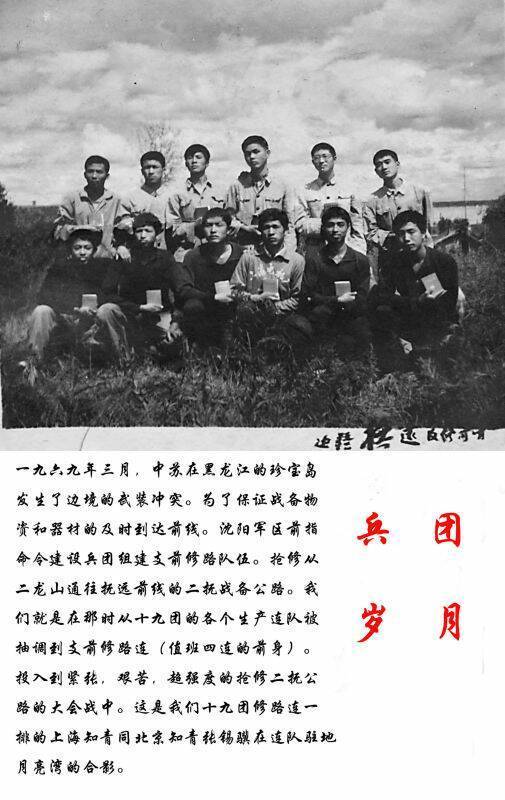第一排左起:?,张敏或于桂珍?,?,?,黄雪萍(北京知青,政治部),李燕云(上海知青司令部办公室),黎丽(北京知青司令部办公室),程东(北京知青政治部),?,? 第二排左起:?,?,?,?,?,?,宣铁富(政治部组织科),?,?,?,贺国民(勘探连) 第三排左起:????????????,屠觉麟(工程连,上海知青)
