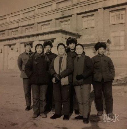 钢厂厂部财务科合影(为欢送黄雪萍回京),背景:钢厂大礼堂。 前左起:黄雪萍(北京知青,71年由六师61团調入钢铁厂),袁秀(周传芳处长的爱人,汽车连周磊的妈妈。周传芳前期是处长,后期是厂党委副书记。),赵兰蘋 后左起:臧万广(哈尔滨知青,采矿连,来自18团,前些年不幸病故),袁才,谢明新(老北京人,75年左右调回北京),侯瑩宗(财务科科长,来自20团,退休后前往山东与儿子同住)