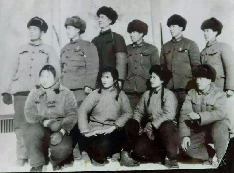 前排左起:肖晶(哈知青,纪敏夫人),黃俊雅(哈尔滨知青,汽车连女司机),廖秀英(汽车连女司机,丁建春爱人,哈知青), 后排:李素珍(天津知青,广播员),