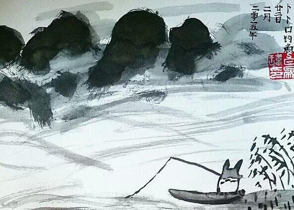 孤舟大龙猫,独钓寒江雪。