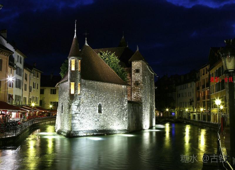 黄昏里的中世纪城堡,安纳西标志性的古建筑。安纳西城堡兴建于12世纪到16世纪,历史上曾是日内瓦伯爵的府邸,为萨瓦王室所有。