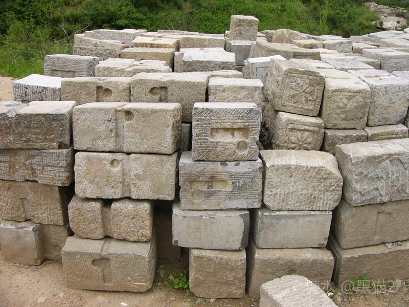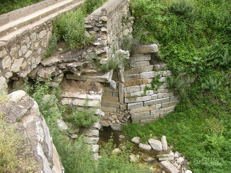 左宗棠桥现在已经塌了一半,路上堆放着收集到的旧石料,我发现拱桥的石料不一般,上面刻有凹凸部分,可能还镶嵌着什么,我不清楚。