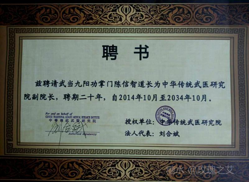 现任: 武当山九阳门九阳功掌门 中华传统武医研究院副院长 中华生命科学研究院高级顾问 信智武当养生院院长, 武当全真龙门派第25代嫡系传人。