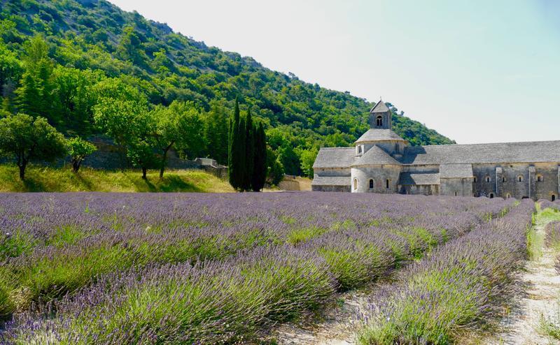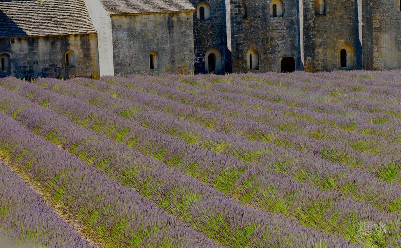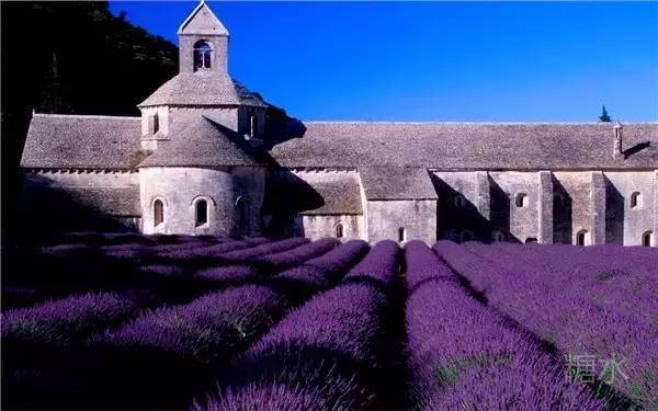 12世纪的塞南克修道院,前方有一大片的薰衣草花田,由院里的修道士亲手种植,这里有不同颜色的薰衣草,据说是最美丽的薰衣草花田。