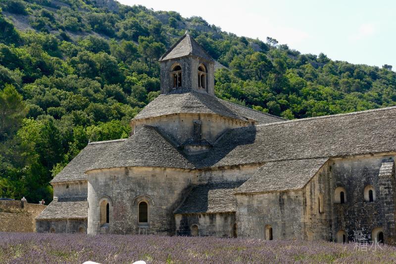 建於1148年的塞南克修道院隐藏在整个山谷中。這是一座典型的西式修道院,罗马式建筑,三横殿和长方形教堂相交构成拉丁十字形,八角形圆顶,五个侧翼,方形的钟楼,回廊,厚重的石头墙体,建筑均衡沉稳,朴素简单。度过了八百多年的岁月,在湛蓝的天空下的修道院愈发显得安静,有一种安宁朴素的美丽。
