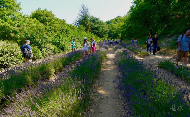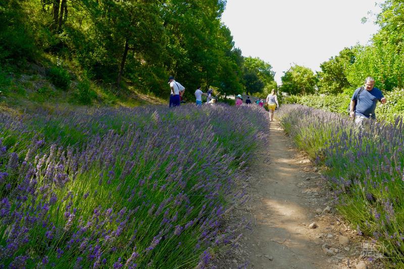 修道院前面大片最美的薰衣草田曾經是開放的,據說亞洲游客特別是日本遊客常闖入其中拍照或採摘花朵,使田野邊緣的薰衣草遭受踐踏和破坏,如今已用鐵網封閉,阻隔了拍攝修道院的最佳角度。但修道士們在走向修道院的路上,还种植了一小片薰衣草。这是专门留给拍照留念的人种的,叫做薰衣草走廊。聞著陣陣淡淡的清香,我們走進了薰衣草走廊。