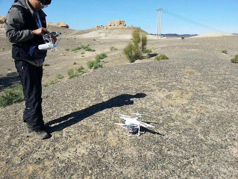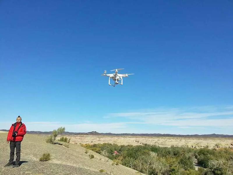 摄影领队操控大疆无人机进行空中拍摄。飞行控制、陀螺稳定云台,多么熟悉而遥远的术语……