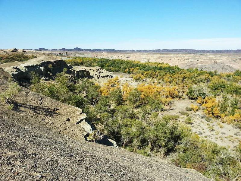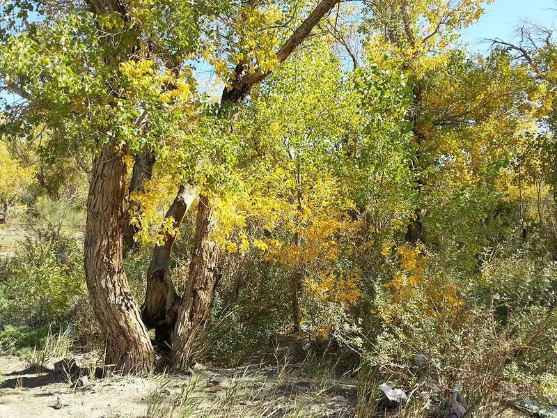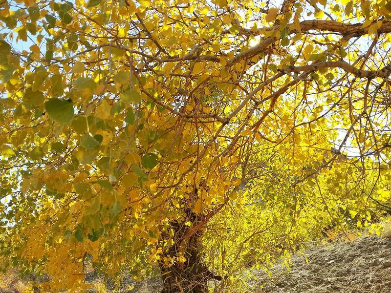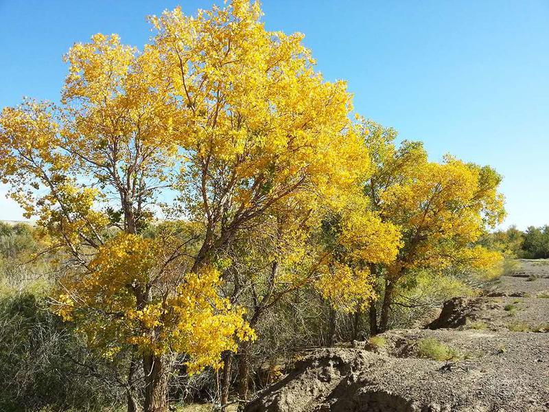 先来到乌尔禾西面的白杨河大峡谷,这里有茂密的胡杨林,主要树种有胡杨、银灰杨、毛柳、沙枣等。