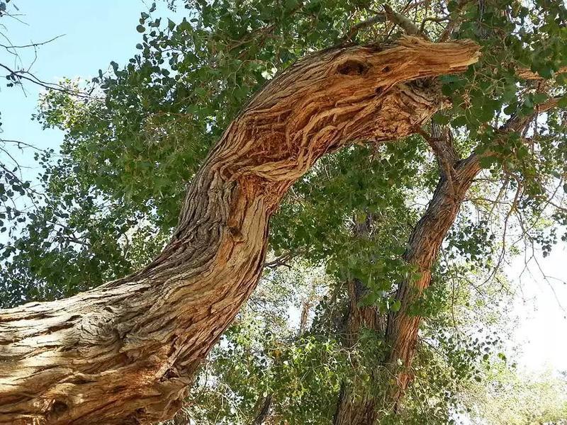 胡杨是新疆古老和珍奇的树种之一,是荒漠中河岸林的优势树种,具有抗干旱、御风沙、耐盐碱的能力。