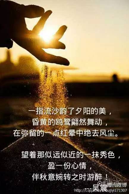 《等你,在秋天的暮色里》 文/吴震 你在远方还好吗 一纸素笺道不尽彼此的思念 风 时常捎去一声问候 那是心中的眷恋 曾经也是这个季节 你消失在我的视线 留言去了自己的世界 你说 你需要寂寞的时间 学会孤单的面对一切 守着阴晴圆缺 梳理过往文字里的缠绵 捻一段时光 咀嚼有着破碎的风险 无论结局如何 在夕阴西下的时刻 只愿黄昏依然相依缱绻 等你 在秋天的暮色里 重温月下花前的诗篇 #魅影清风集##墨香斋#(2016/08/30/08:39稿)