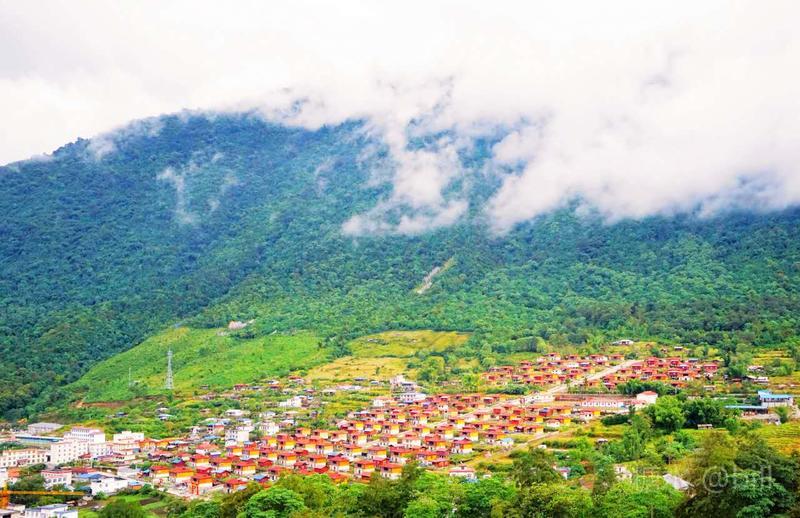 莲花阁的地势比墨脱县城略高,从县城步行约20分钟即可到达,可俯瞰雅鲁藏布江与整个墨脱县城。清晨的墨脱在云里、在雾里;此时站在莲花阁,如在仙山。