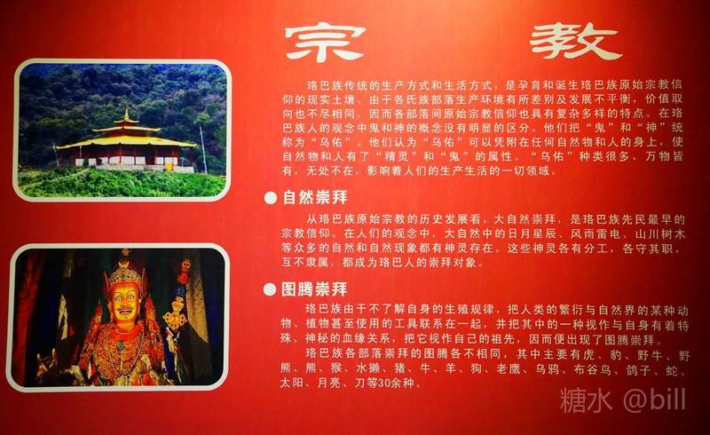 门珞人的宗教崇拜相当广泛,“万物有灵观”是他们的信仰和崇拜的思想基础。他们有自己的语言,但没有文字,长期使用刻木、结绳记事、寓意深奥的谚语、民间故事及习俗等创造了自身的灿烂文化!