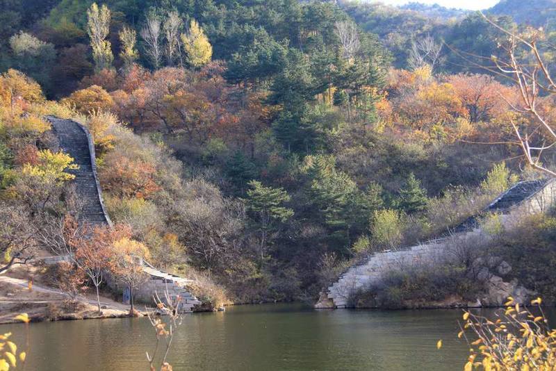 黄花城水长城位于怀柔境内,是北京市内少有的山水相连的长城。以奇著称,以秀为特色,融山川,碧水,古长城为一体。 黄花城水长城有三绝,一绝,建于明永乐年间的长城盘旋于山脊之上,环绕在灏明湖畔,景色秀美壮观。