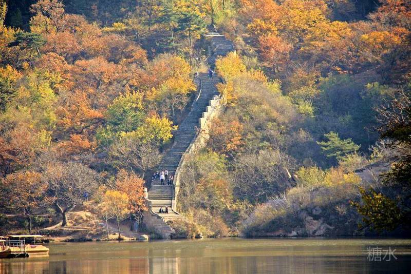 二绝,湖水将长城自然截开,形成长城戏水,水浸长城的奇特景观。这里有三段长城入水,是国内绝无仅有的。