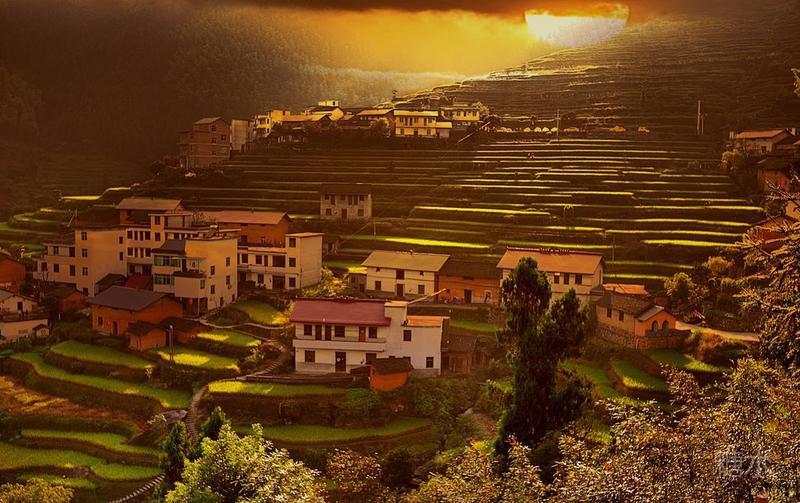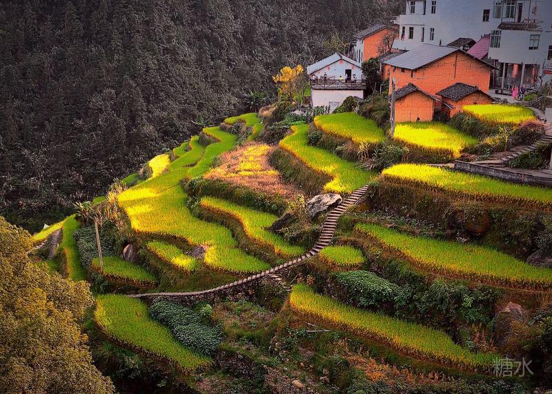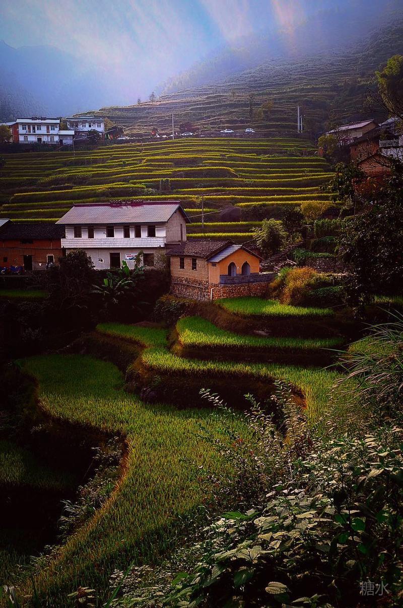 浙江省开化县长虹乡的台回山,只有100多户人家,从山腰到山脚,那里最有名的就是梯田,更有“江南布达拉宫”之称