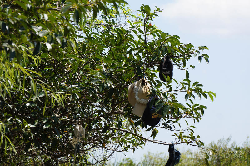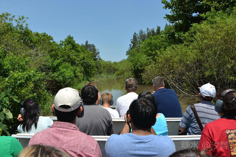 沼泽泥潭中的一棵小树,可是挂着许多战利品(游客们的帽子可是因风力船的急速行驶而被劲风吹落)