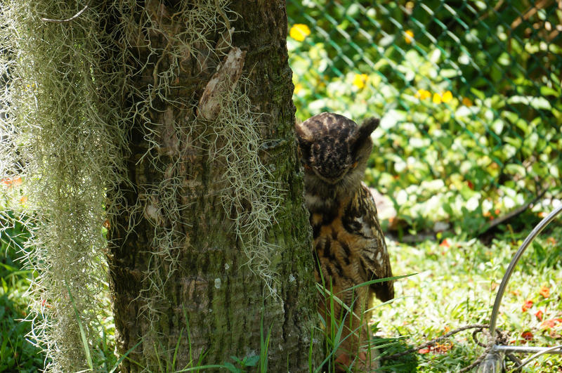 湿地公园里的乖巧猫头鹰在目视着我们......