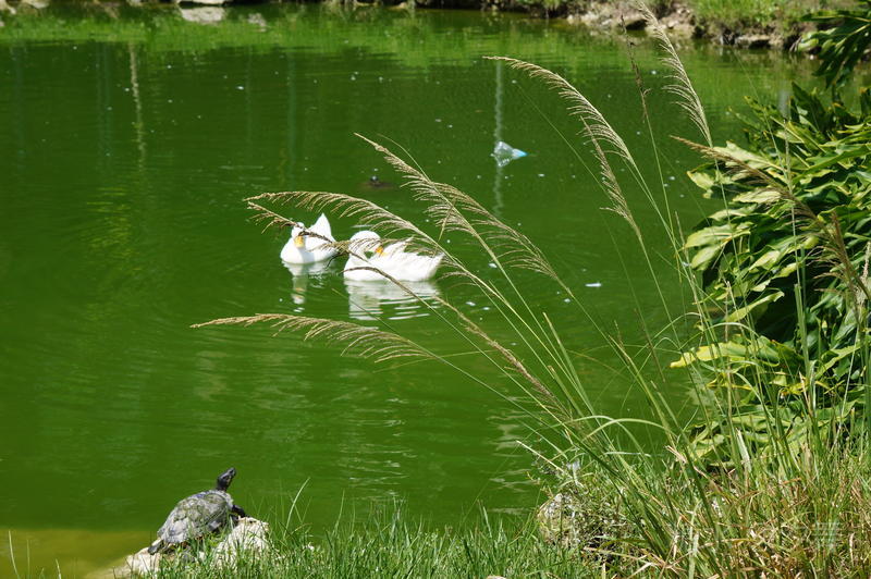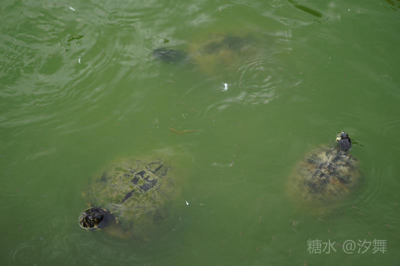 池水中的乌龟和鸭子.....