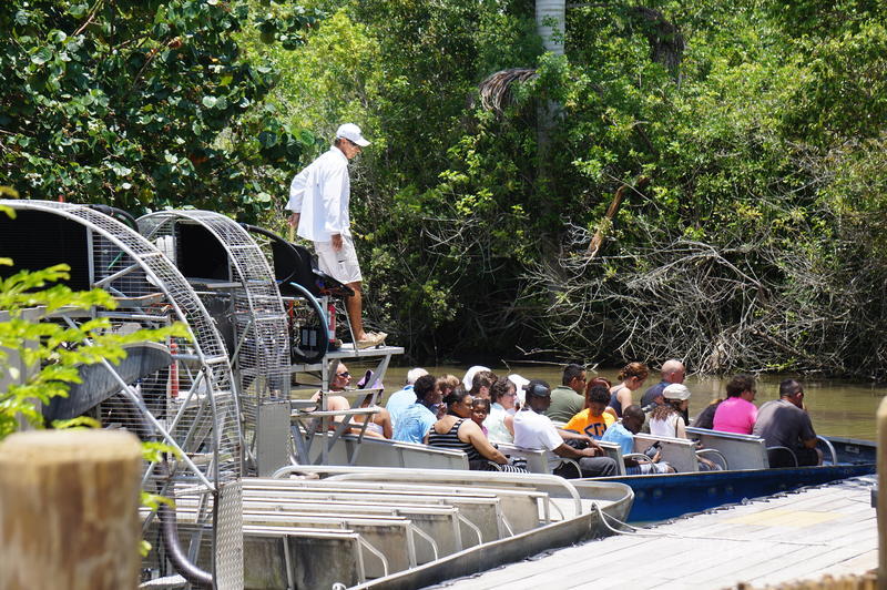 乘坐超强马力的风力船在沼泽泥潭水中前进......