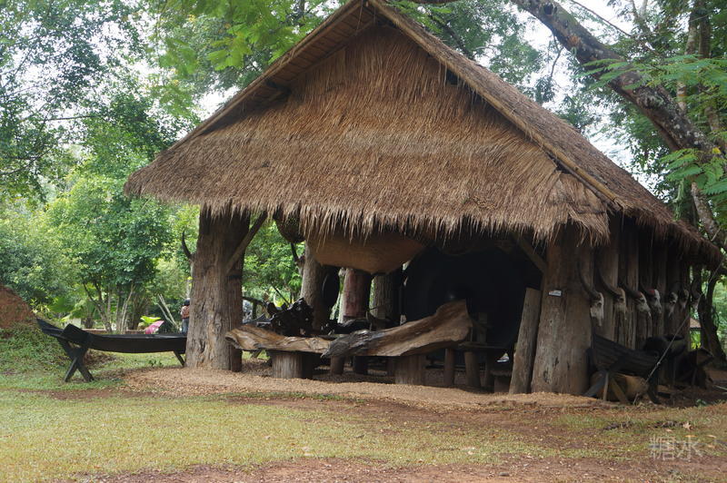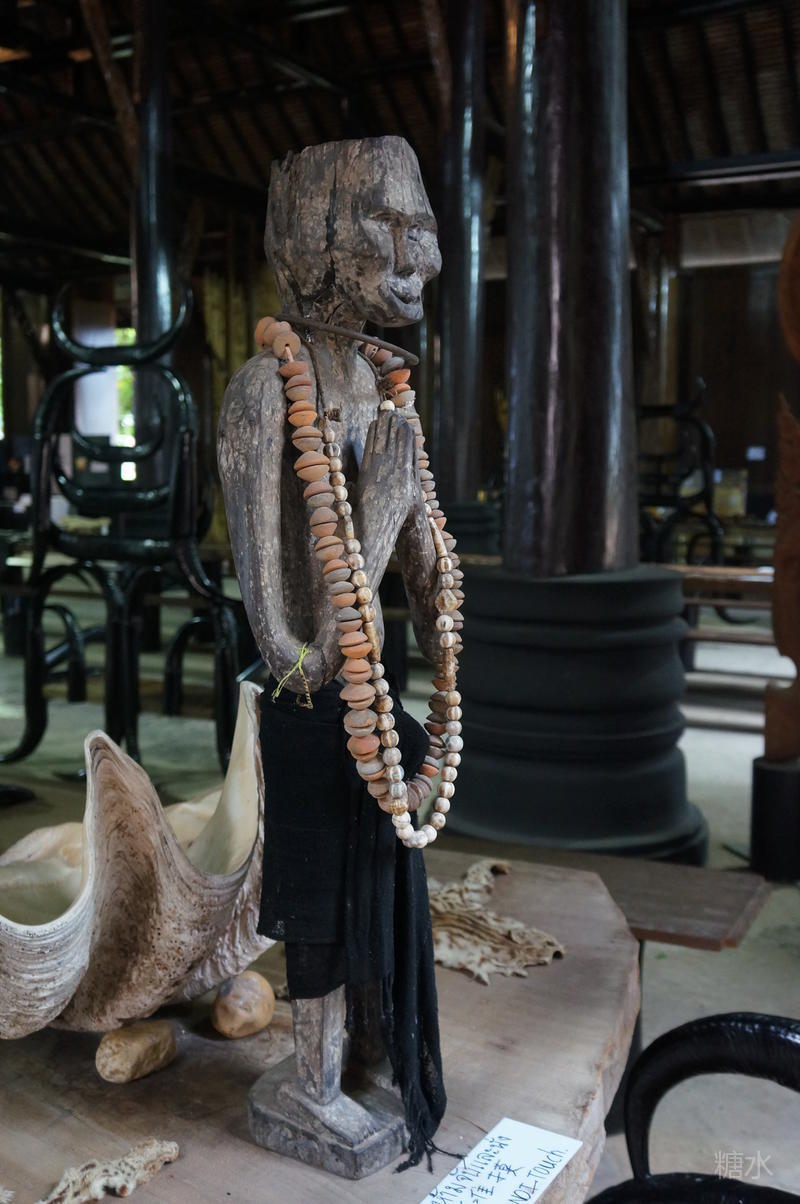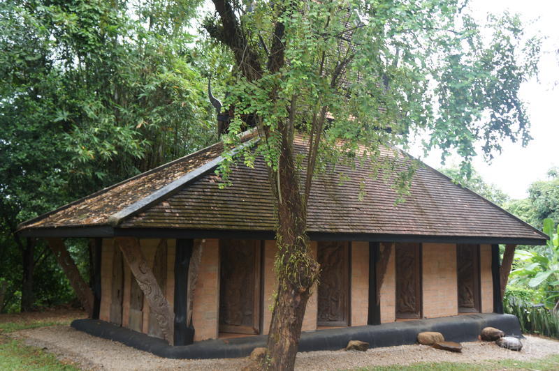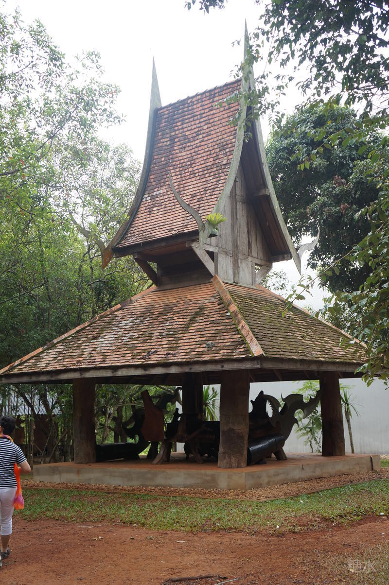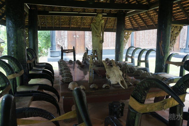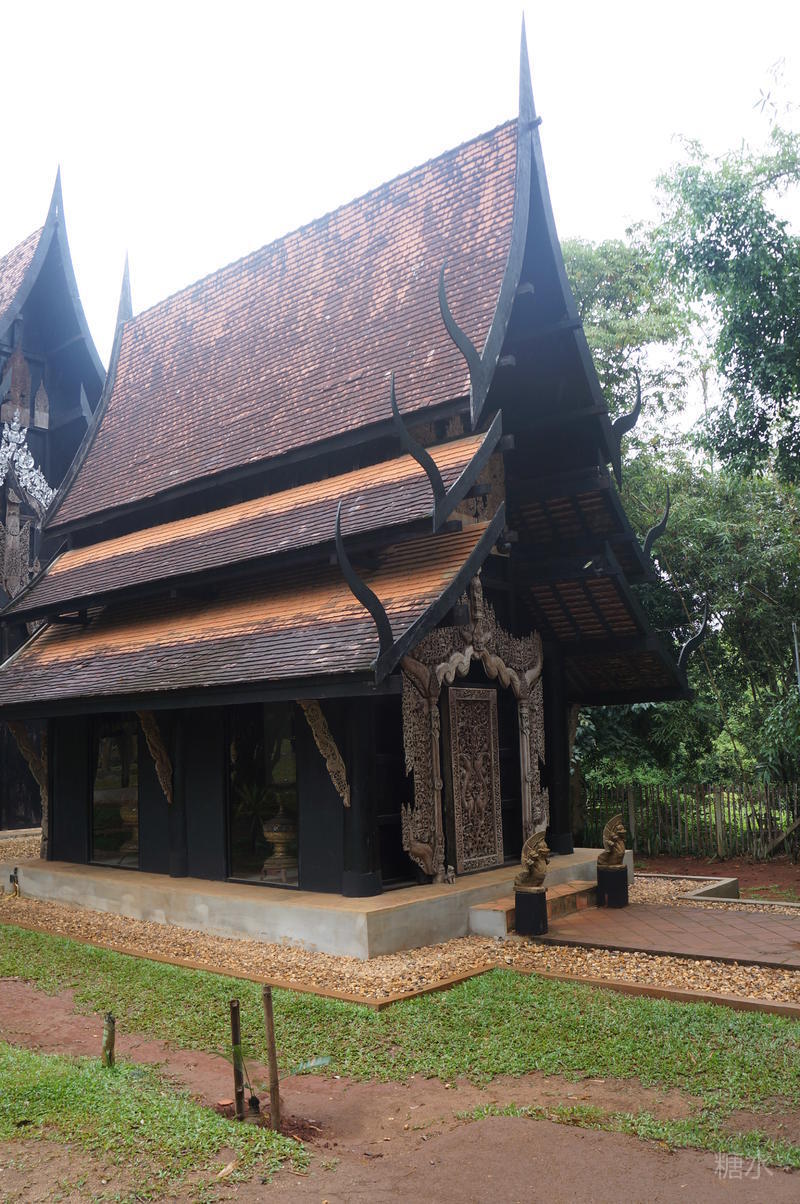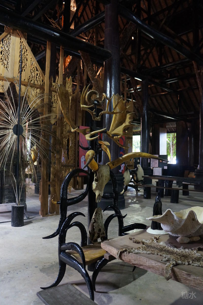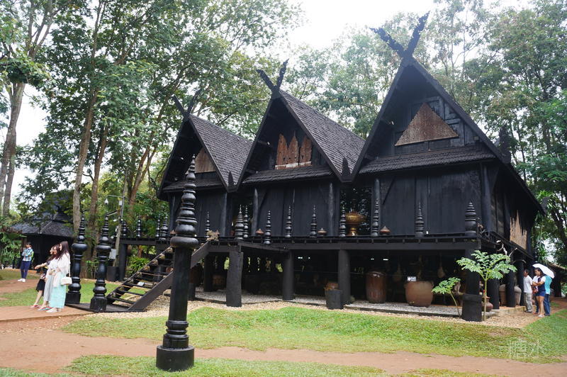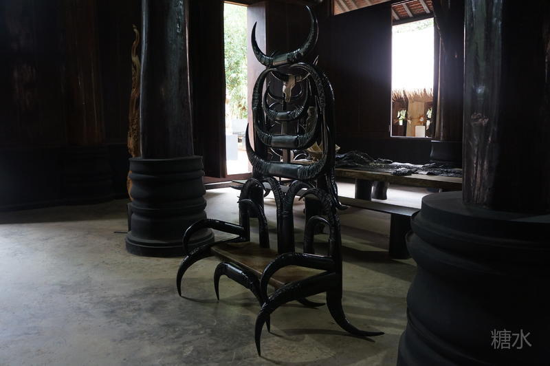 黑屋博物馆是由泰国鬼才艺术家Thawan Duchanee花费了36年时间设计并建造,黑屋博物馆的外部是由柚木建造。黑屋博物馆搜集了大量关于动物死亡的骸骨,把远古时代的兽骨,原始民族的猎杀工具,古董和标本等,用现代艺术手法融合成各种艺术品。 黑屋博物馆周围还散落着十几栋大小不一以牛角装饰的建筑,有几栋建筑甚至有三、四层楼高,因为所有的建筑、展品、艺术品等都以黑色为基调,所以又被称之为黑屋,黑屋博物馆。也俗称黑庙。 黑屋的规模比灵光寺要大。艺术价格也很高。