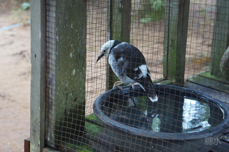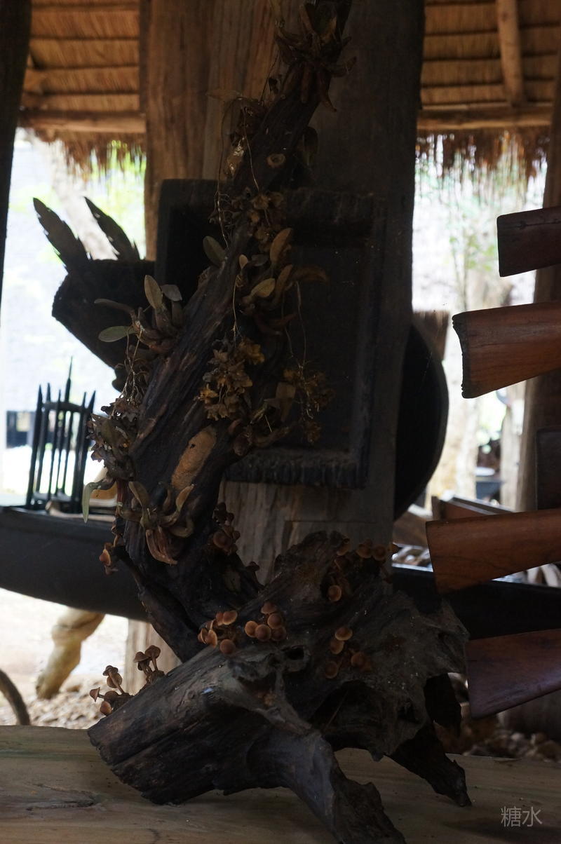 神鳥塑像后面的一个雕满花纹的大木架,中还有一根也雕满图腾的高大的木柱。