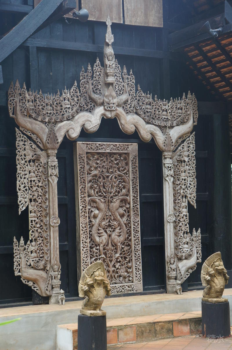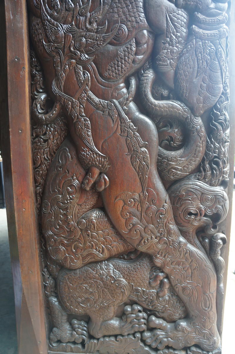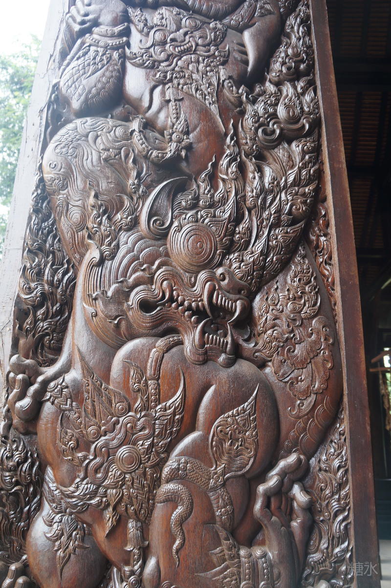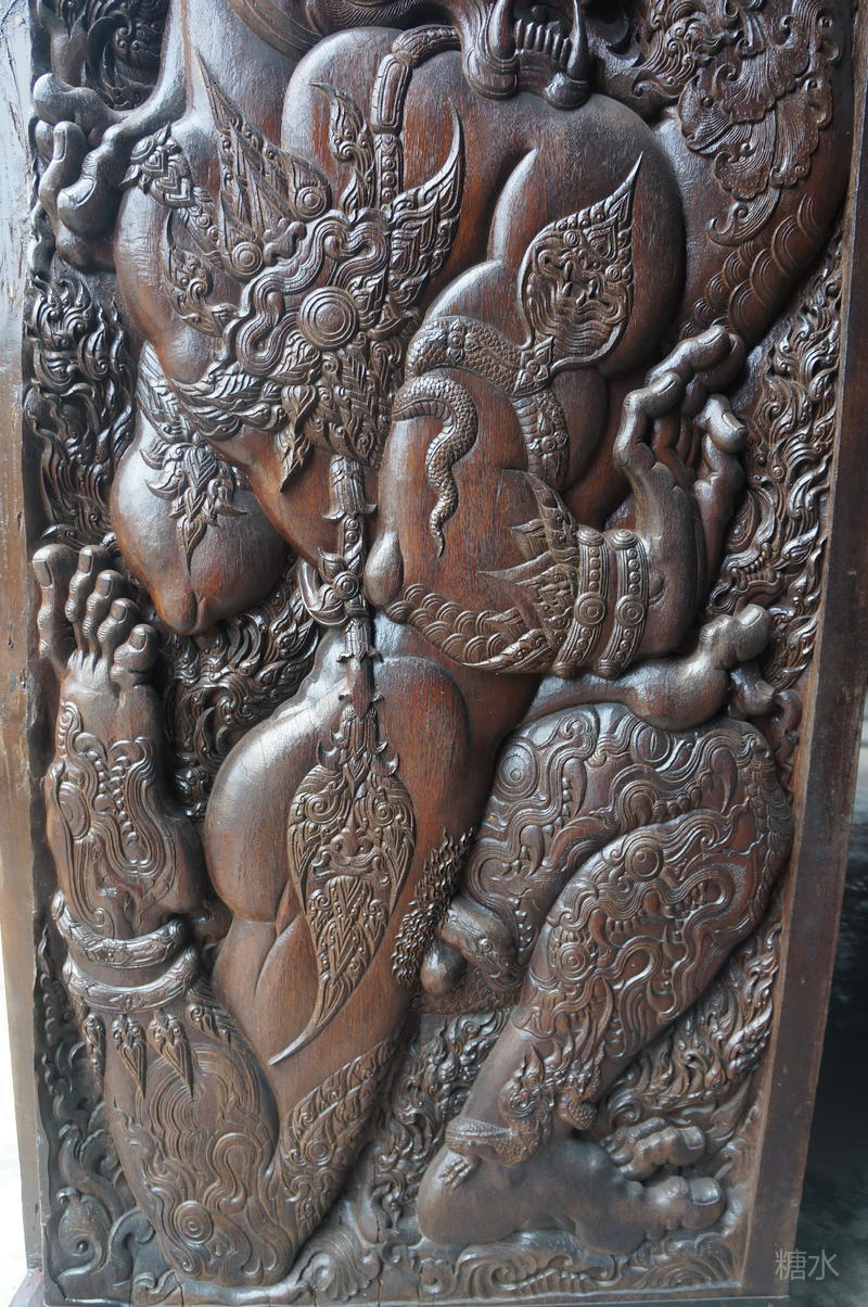 大殿巨大的柚木大门,上面滿是图腾的雕塑。