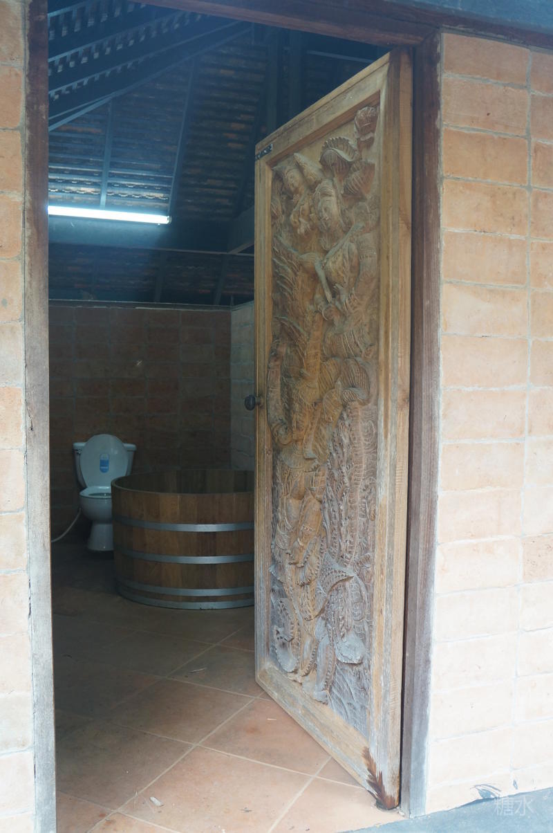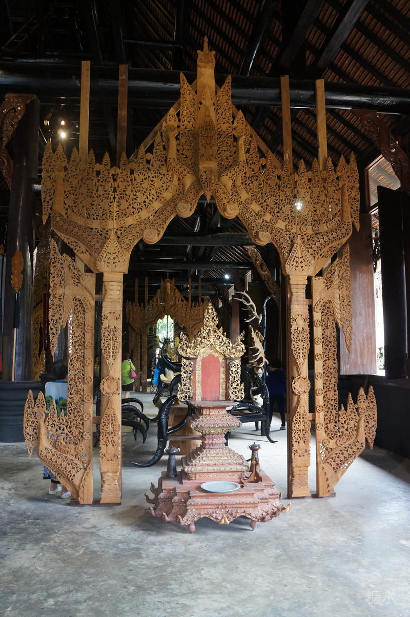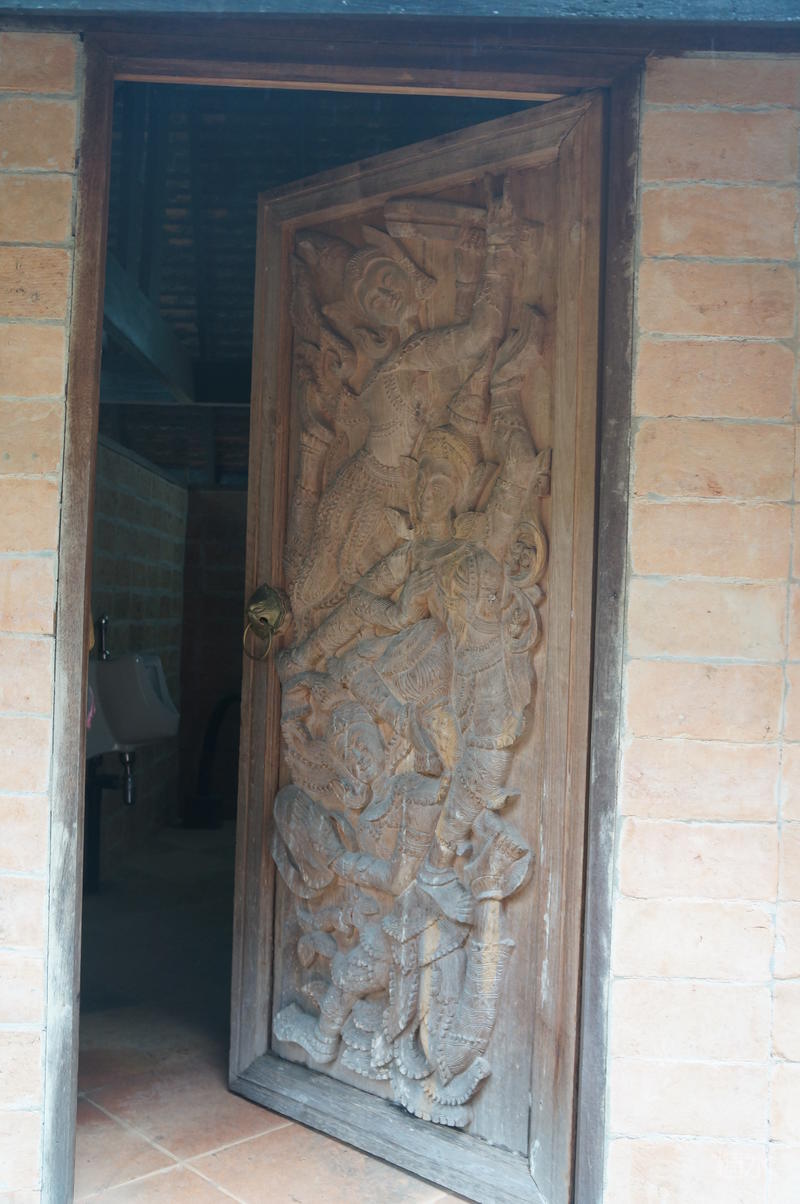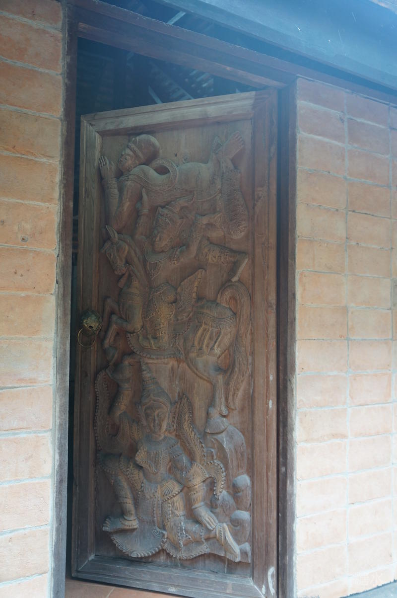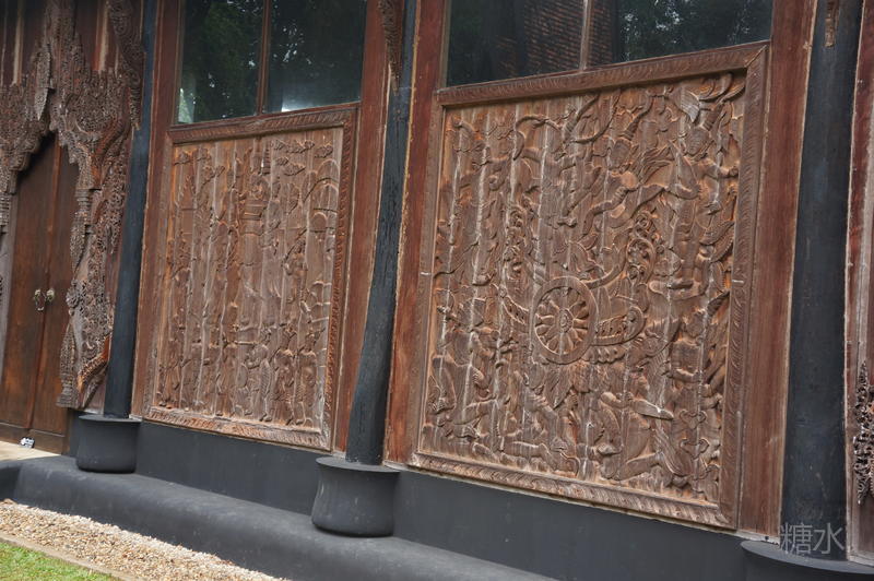 大殿巨大的柚木大门,上面滿是图腾的雕塑。