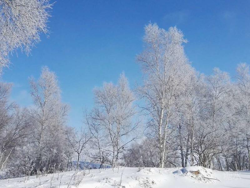 雪原的天气瞬息万变,刚刚大雪翻飞,忽而蓝天白云。第二天杜老板带着我们驶向蛤蟆坝,我们在山上感受到蓝天白云,感受到雪花翻飞,看到从未见过的雾松。