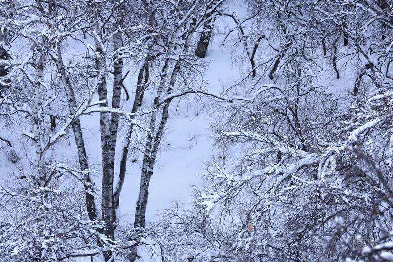 这里寂静的只听到雪花飘飞的声音,美的令人窒息,国画般的美景,只能一次次举起相机留下世间美景