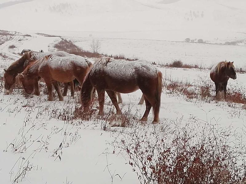 清晨,克什克腾旗下起了入冬以来的第六场雪,如注的雪花肆意翻飞已经尺把深的积雪还在加厚