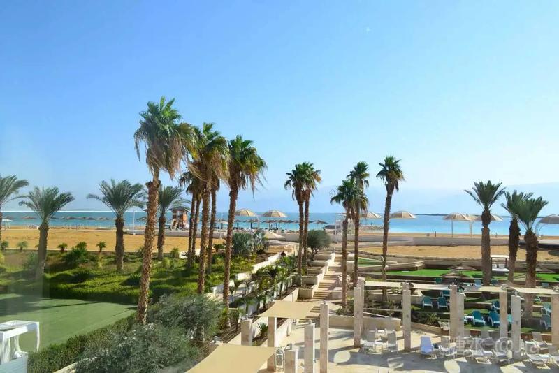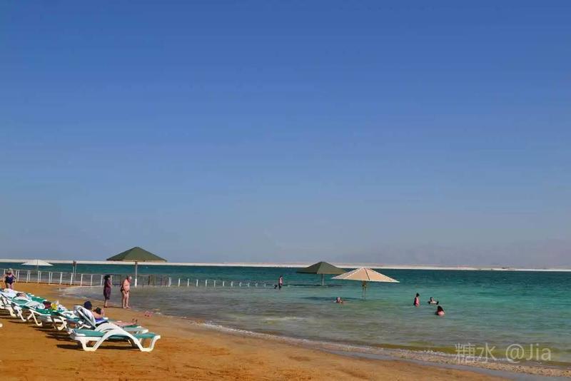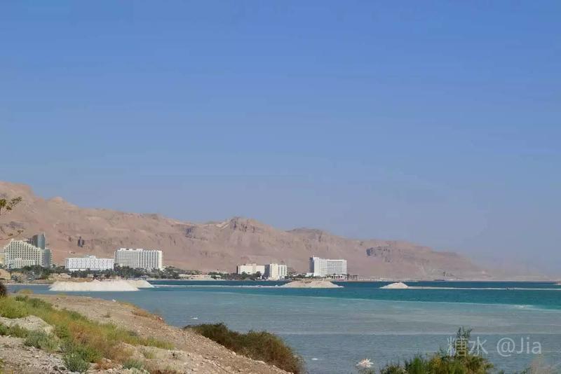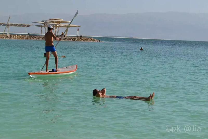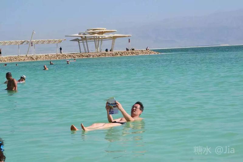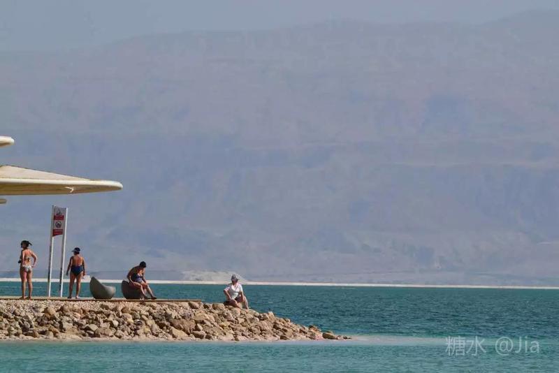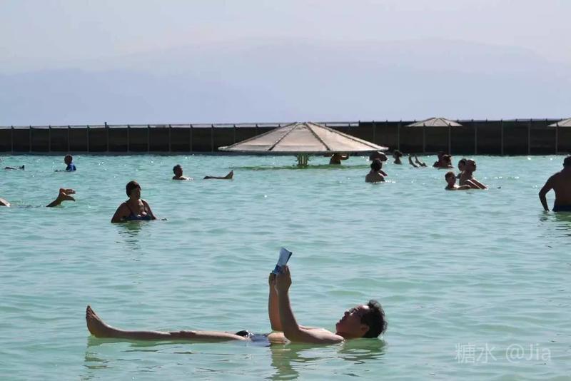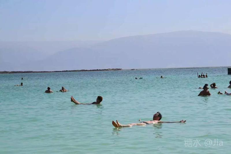 真能浮起来哎! 死海漂浮的体验令人难忘。其盐含量是一般海水的10倍而致生物无法生存,水下一抓就是一把盐,海水泡过的皮肤如凝脂一般滑爽。 海的对岸即是影影绰绰的约丹。