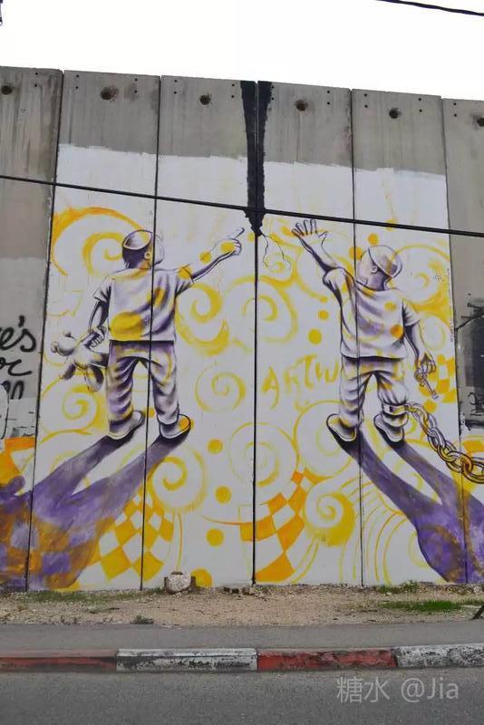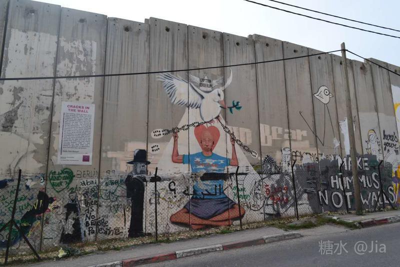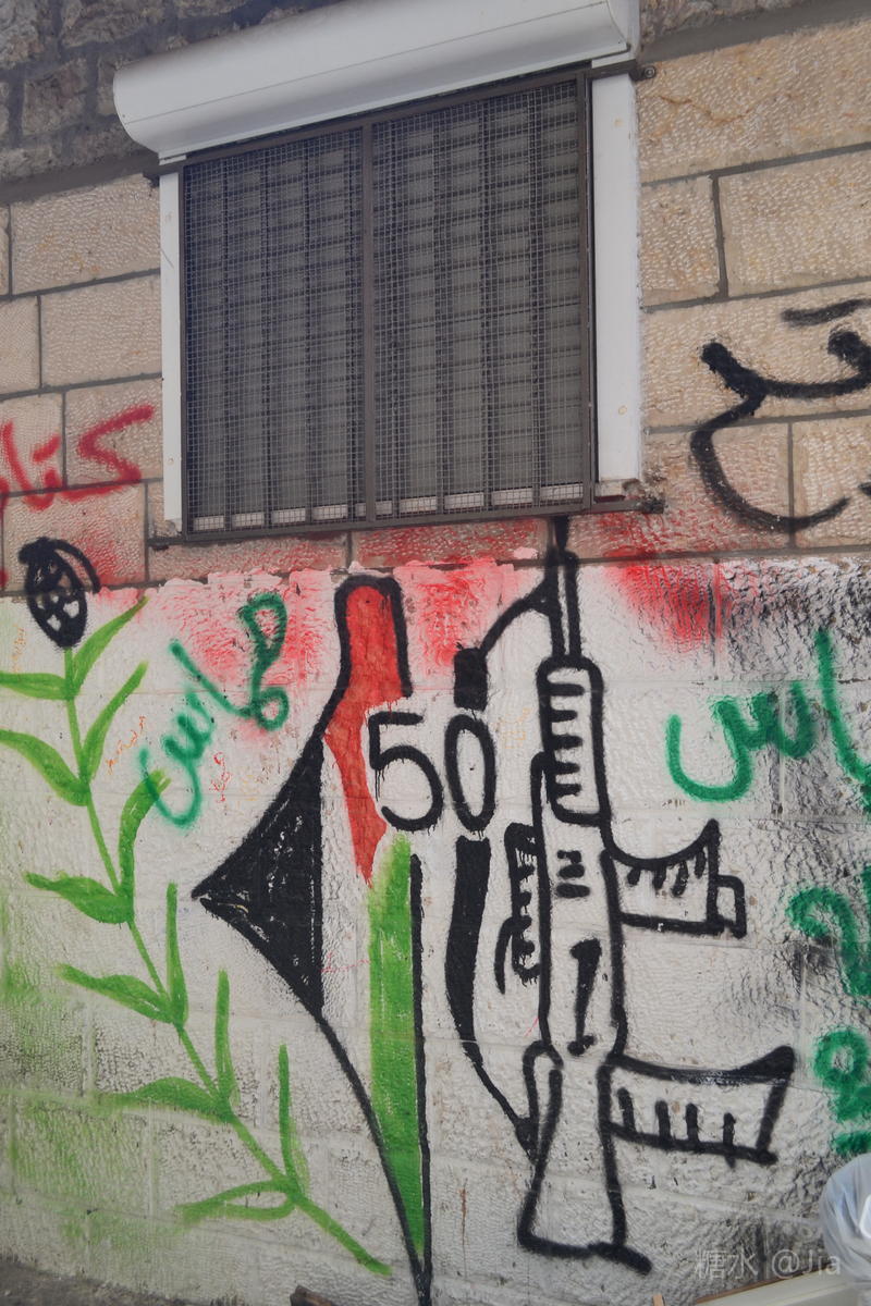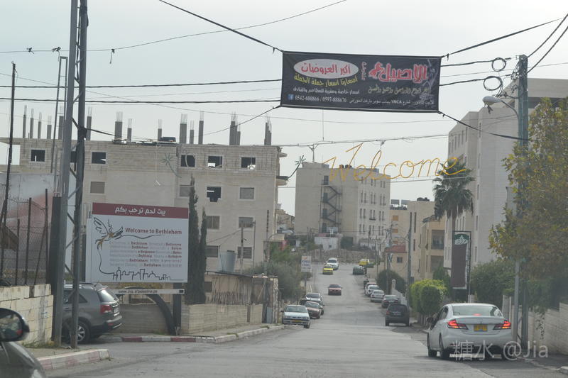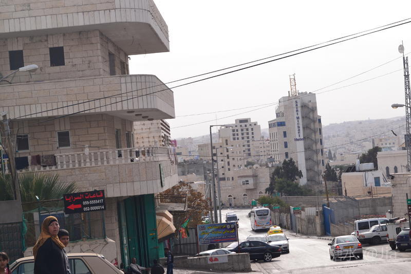 去巴勒斯坦原来不在探访计划之中。那些个只在新闻中出现的城市,加沙、杰里科、希伯伦在6号公路和90号公路边的指示牌上是真正切切地出现过。杰里科能从车上远眺,惨白灰暗、了无生气。听新闻及房东Vera的告诫,危险,不要去巴勒斯坦。 因此,在耶如撒冷的第二天只打算去拍几张以巴边境隔离墙的照片。导航设定离得最近的是城市伯利恒,到达边境的隔离墙也就20多分钟的车程。靠近检查站才开始拍照,就被一青年跑步过来高声叫停,原来是巴勒斯坦青年要我坐他的车去伯利恒,说是我租的以色列车不能进巴勒斯坦境内,而且单独去的话危险。因为没在计划中,我谢绝了他的导游。 但在拍照时,我观察到有不少挂着以色列牌照的大小汽车开过了检查站,这让我纳闷。去问警察和以军士兵,被告知我的汽车和单次签证可以进入巴勒斯坦并回到以色列,但建议我留在耶如撒冷游览,不要去crazy的巴勒斯坦地盘。 原来巴青年是在骗人啊! 抵不住一探巴神秘的诱惑,我的冒险劲又上来了,和LP一商量,“进”! 不理身后的再次叫喊,晃了晃护照,凭着中国脸,没停车检查就过了隔离墙。但是,车上的卫星导航不久就罢工了,原来以色列人是设定好了的!
